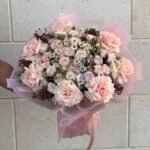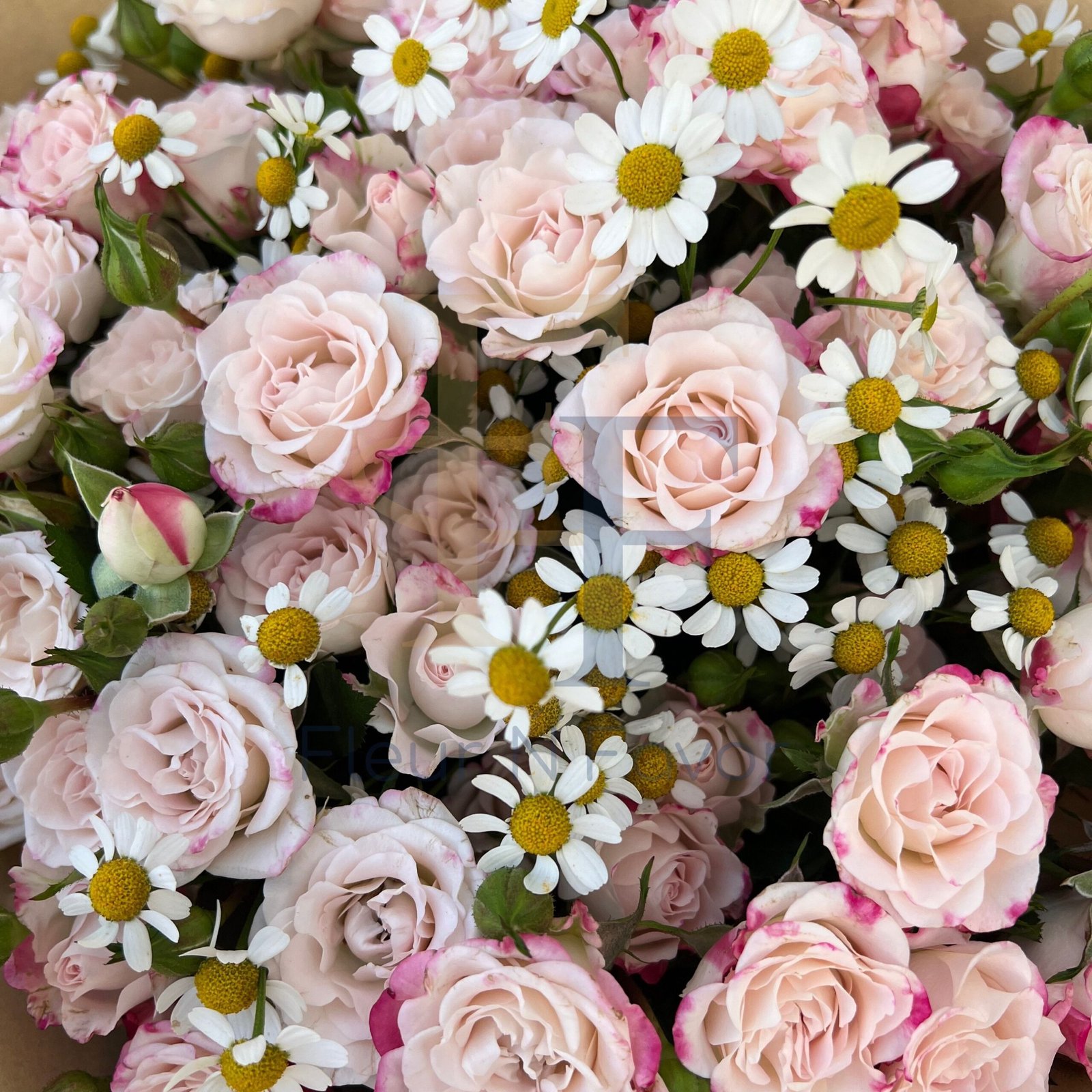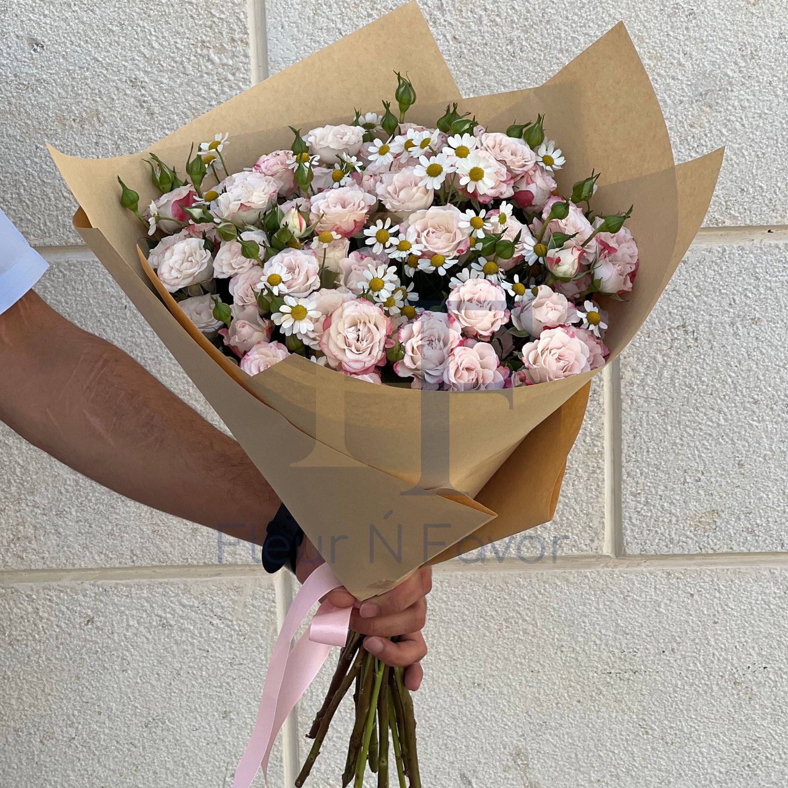 Soft, fresh, and effortlessly charming, the Blush Meadow Rose Bouquet brings together delicate blush pink spray roses and cheerful white daisies, wrapped in earthy kraft paper for a naturally elegant finish. The gentle pink hues paired with daisy accents create a light, joyful arrangement that feels warm, graceful, and full of life. Perfect for expressing appreciation, celebrating simple joys, or sending a heartfelt smile, this bouquet is a beautiful reminder that elegance often lies in simplicity. Hand-tied with care and delivered fresh to make every moment feel special.