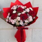 Make a bold yet graceful statement with our Crimson Blush Rose Bouquet, a luxurious hand-tied arrangement featuring rich red roses paired with delicate blush pink spray roses. Wrapped in striking red paper and finished with an elegant ribbon, this bouquet captures the perfect balance of passion and softness. The contrast of deep crimson and gentle pink tones creates a timeless romantic appeal—ideal for expressing love, admiration, and heartfelt emotions. Whether you’re celebrating a special milestone or simply want to make someone feel cherished, this bouquet delivers beauty, warmth, and unforgettable charm in every bloom.