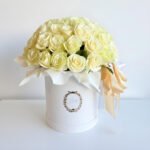 Presented in our signature premium white hat box, the arrangement features a delicate gold-embossed crest and is finished with a cascading champagne satin ribbon. Crisp white tissue paper frames the base of the flowers, adding a layer of contemporary texture to the traditional elegance of the roses. Whether you are celebrating a diamond anniversary, a formal wedding, or a significant professional milestone, this collection serves as a serene and sophisticated monument to life’s most beautiful moments.